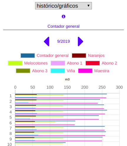 Podrás consultar los históricos de consumo de los contadores y de los distintos sectores